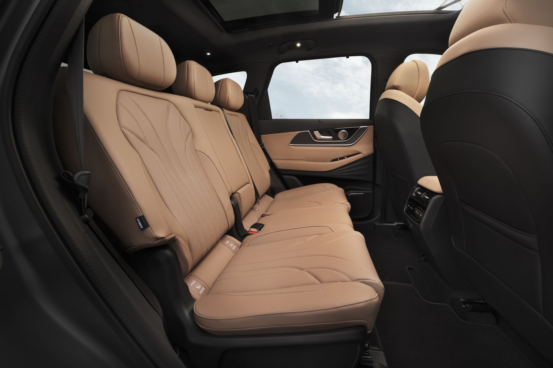 Por dentro, el discurso va de “salón tecnológico” sin olvidarse de lo familiar. La zona del conductor combina instrumentación digital de 10,25”, una pantalla central de 15,6” con resolución 2,5K y un Head‑Up Display de 8,8” capaz de proyectar velocidad, navegación o alertas de ángulo muerto, entre otras informaciones. En confort, los asientos delanteros presumen de ajustes eléctricos (hasta 12 posiciones en el del conductor), calefacción, ventilación y masaje, mientras que el acompañante añade una posición “gravedad 0”. La segunda fila puede ser calefactada y ventilada, con regulación eléctrica y desplazamiento longitudinal de hasta 260 mm para modular espacio y facilitar el acceso a la tercera fila.