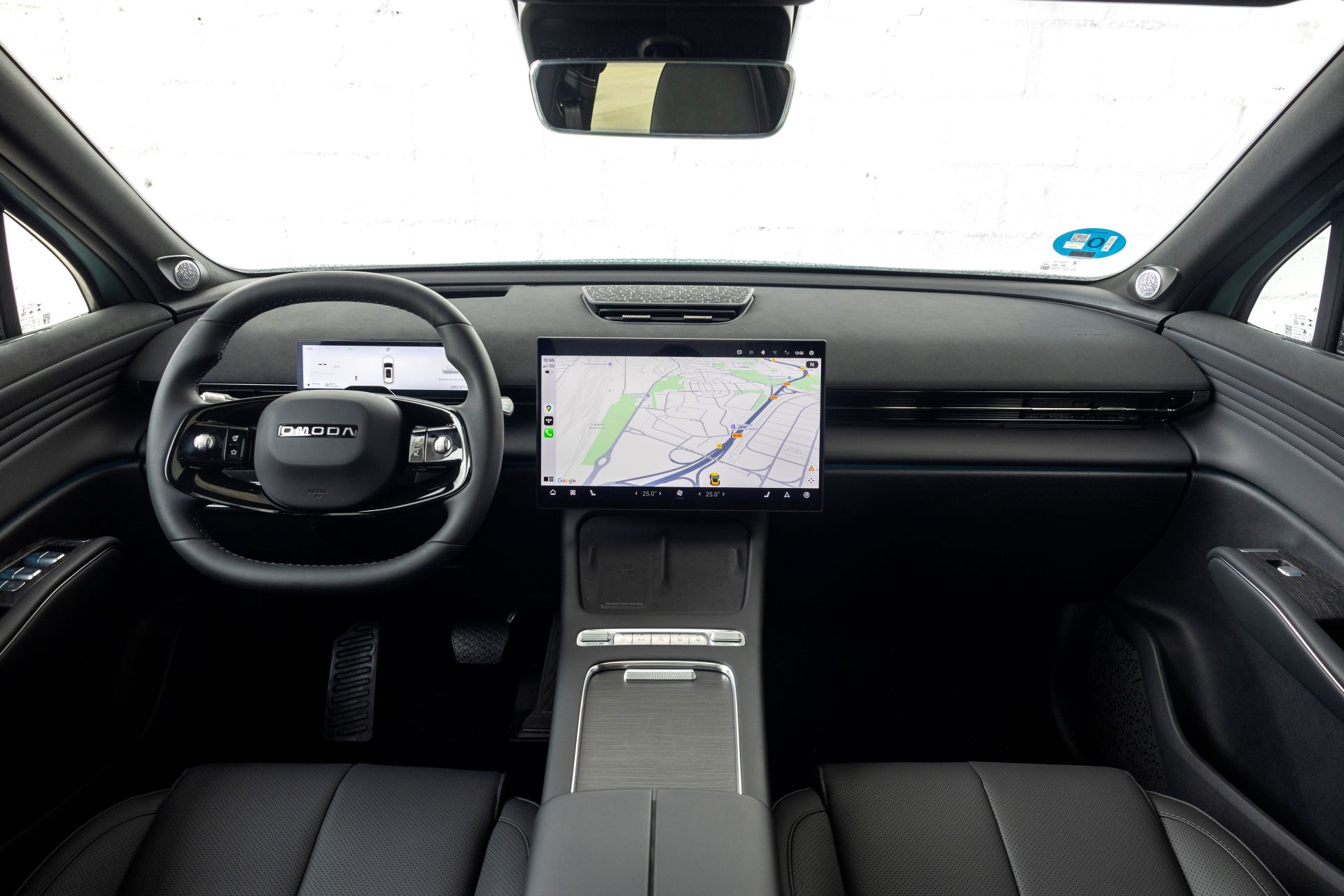 De puertas adentro, la marca mantiene también la misma filosofía y apuesta por una cabina moderna, ordenada y claramente digital. El conductor se encuentra con un cuadro de instrumentos de 8,88 pulgadas y, como gran protagonista, una pantalla central de 15,6 pulgadas con resolución 2.5K. En el acabado Premium, esta pantalla añade un rasgo diferencial: es deslizante, de modo que puede moverse hacia el copiloto para repartir la interacción con el sistema multimedia (y volver a su posición con un gesto o desde un mando de acceso rápido). Detrás de esa fluidez de uso hay una arquitectura “seria” para este nivel de precio: procesador Qualcomm Snapdragon 8155, 12 GB de RAM y 128 GB de almacenamiento, con el objetivo de evitar retardos, acelerar el arranque y mantener el sistema estable incluso con varias funciones funcionando a la vez.